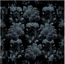 Black floral damask seamless pattern. Baroque flourish dark black vector background wallpaper illustration with vintage antique 3d roses flowers, curl swirl leaves and luxury 3d flowers ... See More By Naila Zeynalova 145523613