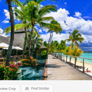 Relaxing bar in palm shade and pool bnear the beach. tropical paradise Mauritius island By Freesurf
