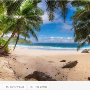 Tropical exotic beach with coconut palm trees on blue ocean beach in Paradise island. By lucky-photo