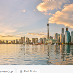 Panorama of Toronto skyline at sunset in Ontario, Canada. By Javen
