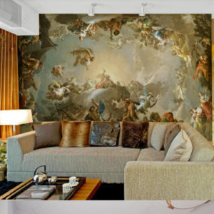 European style ceiling oil painting entrance hotel tea background(15243884)