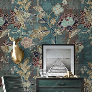 Abstract retro hand painted tropical rainforest plant background wall(19109481)