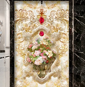 European-style marble oil painting vase flower embossed porch background wall(16831607)