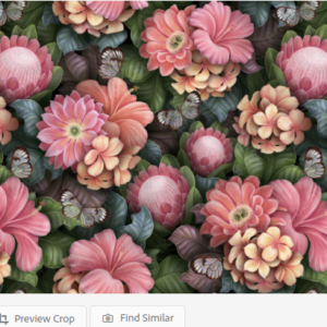 Floral seamless pattern. Tropical flowers bouquets, plumeria, protea, hibiscus, glasswinged butterflies, exotic leaves, fresh foliage. Hand-drawn vintage 3D illustration. Good for luxury ... See More By alenarbuz