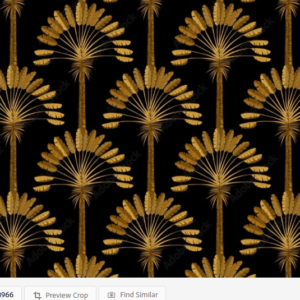 Gold and black Wallpaper with floral pattern in the style of art Deco. Ordered vintage ornament with palm trees. By OlgaShashok