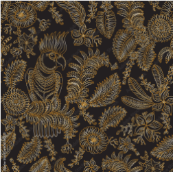 golden tropical flower and fantasy cockatoo parrot contour on a black background.(306146220)