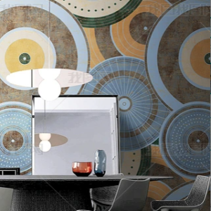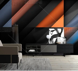 modern minimalist geometric living room retro golden TV background wall mural(19143255)