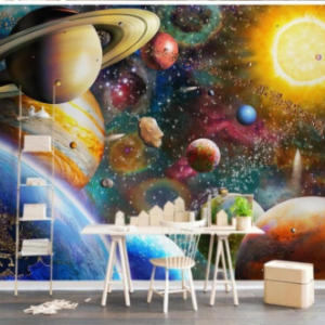 Cartoon world universe planet space child bedroom mural (TN8819)