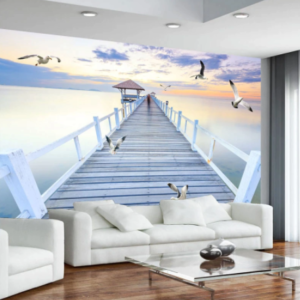 Modern Simple Wood Bridge Seascape Murals (TN 166289)