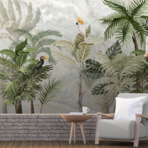 Custom modern fashion wallpaper pink green tropical rainforest plant background wall paper