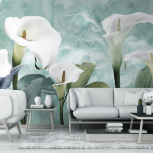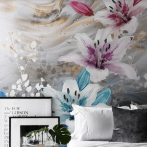 hand painted watercolor lily flower light luxury TV background(26098093)