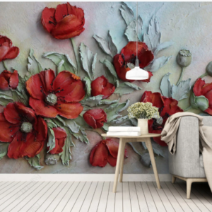 3D three-dimensional relief red poppy background wall murals(18405133)