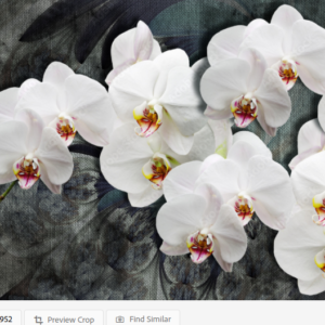 3d wallpaper texture, white orchids on abstract canvas textures. Grey background. Murals effect. By DiVNA