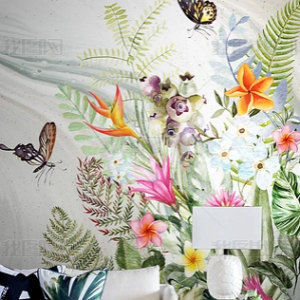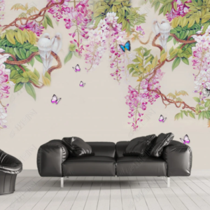 Hand-painted wisteria flower butterfly TV sofa background(16741299)