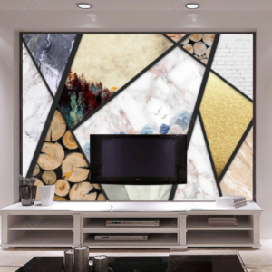 modern geometric living room retro golden TV background(19144170)