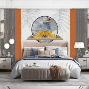 modern jazz white marbled wood grain leaf complete mural(24366064)