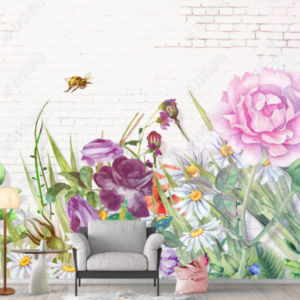 Pastoral Flower Line Drawing Retro Wall mural(25377155)