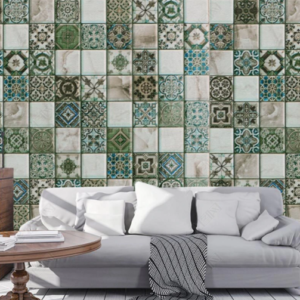 Ornate brightly colored portugese tile texture in green and white By Simon