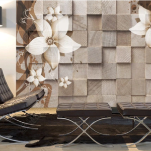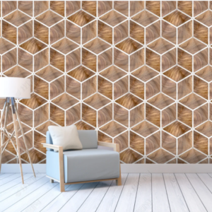 3D Wallpaper of wood design volume hexagon tiles . Material wood oak. High quality seamless realistic texture. By GeoModule